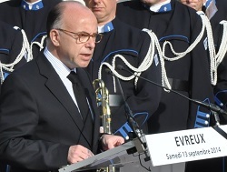 Le ministre de l'Intérieur s'est recueilli ce samedi matin, dans la cour d'honneur de l'hôtel de police d'Evreux, devant le cercueil, recouvert du drapeau tricolore, de Sandrine Mortas, la policière de 39 ans mortellement blessée samedi 6 septembre à Caen (Calvados), en marge des Jeux équestres mondiaux qui se déroulaient en Basse-Normandie.