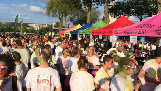Un podium, de la musique et un DJ (Téo Fox), des couleurs (jets de peinture) et des coureurs. Car la Holi Run c'est avant tout une course à allure libre et non-chronométrée, sur 5 et 10 kilomètres. Le circuit est à réaliser 2 fois ou 1 fois en fonction du parcours avec passage obligé tous les kilomètres dans les zones de couleur mais aussi devant le podum installé devant le Hangar 23.