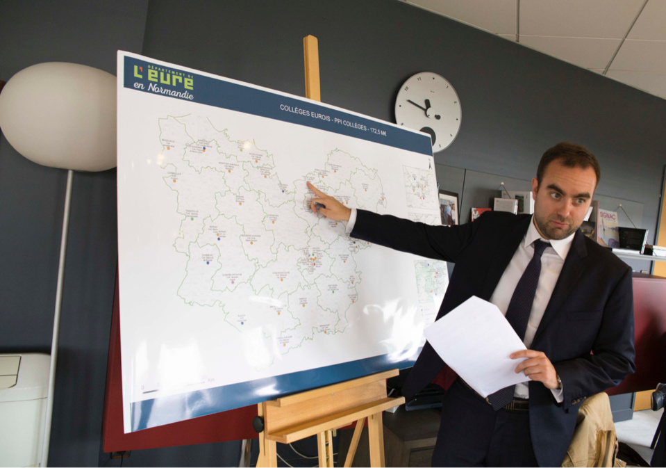 Début juin 2016, Sébastien Lecornu, président du Département, a présenté un plan d'urgence de 172,5 M€ destiné à moderniser et sécuriser les collèges de l'Eure (Photo@Département de l'Eure)