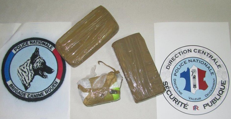 Encore une belle prise réalisée par la brigade des stupéfiants de la sûreté départementale de Seine-Maritime, en collaboration avec le groupe de voie publique (GVP), la compagnie départementale d'intervention (CDI) et le chien anti-drogue de la brigade canine. Les policiers, au terme de près de 18 mois d'investigations, ont interpellé un trafiquant d'héroïne et de cocaïne qui alimentait des réseaux de toute la région, à partir de son domicile à Cléon, près d'Elbeuf. Deux pains d'héroïne de 500 grammes chacun ont été saisis dans un placard de la cuisine, ainsi qu'un sachet de 200 grammes de cocaïne, au cours de la perquisition.