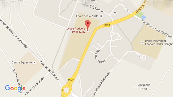 L'accident s'est produit sur cette ligne droite. La Clio s'est immobilisée sur le toit devant le lycée agricole, avenue de l'Europe (illustration@Google Maps)