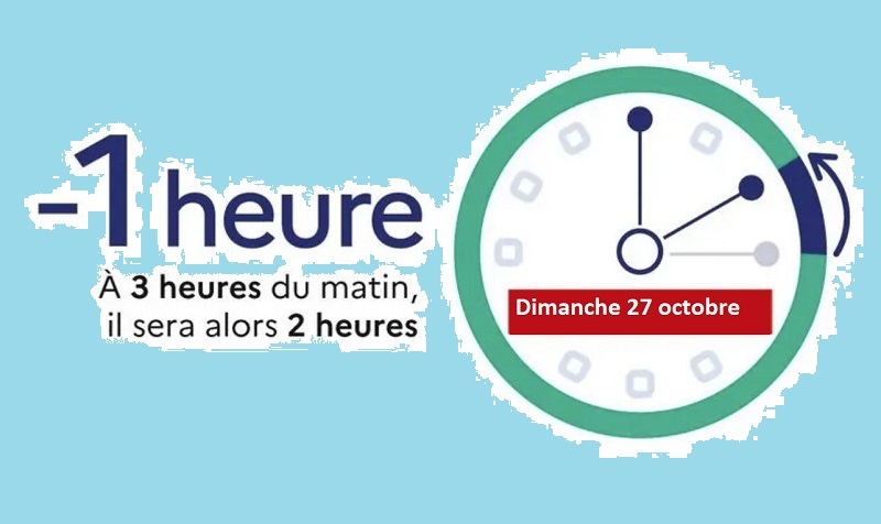 Le passage à l'heure d'hiver aura lieu dans la nuit du samedi 26 au dimanche 27 octobre 2024. Il faudra reculer sa montre d'une heure : à 3 heures du matin, il sera alors 2 heures.