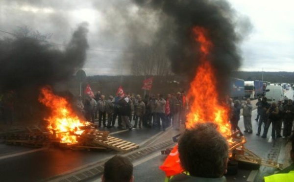 Plus de 300 ouvriers de Renault-Flins (Yvelines) ont bloqué ce mardi matin et jusqu'aux environs de 11 heures la route d'accès principale au site de l'usine. Des barricades confectionnées avec des...