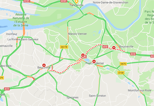 Les usagers sont invités à la prudence et à suivre les indications sur le terrain et à observer la sortie obligatoire à l'échangeur A13/A131.