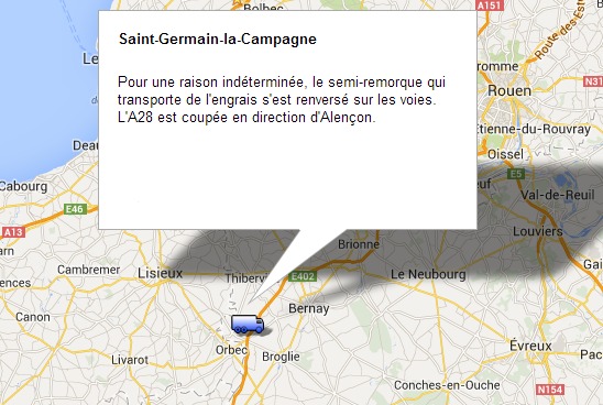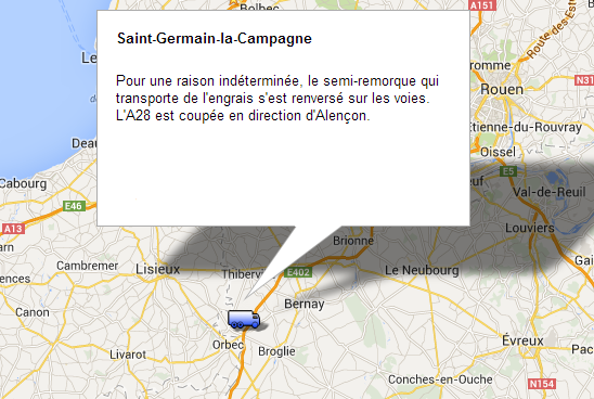 L'autoroute A28 a été coupée à la circulation dans le sens Rouen - Alençon ce lundi après-midi, à hauteur de Saint-Germain-la-Campagne (Eure). Un semi remorque s'est couché en travers des voies au point kilométrique 231.
