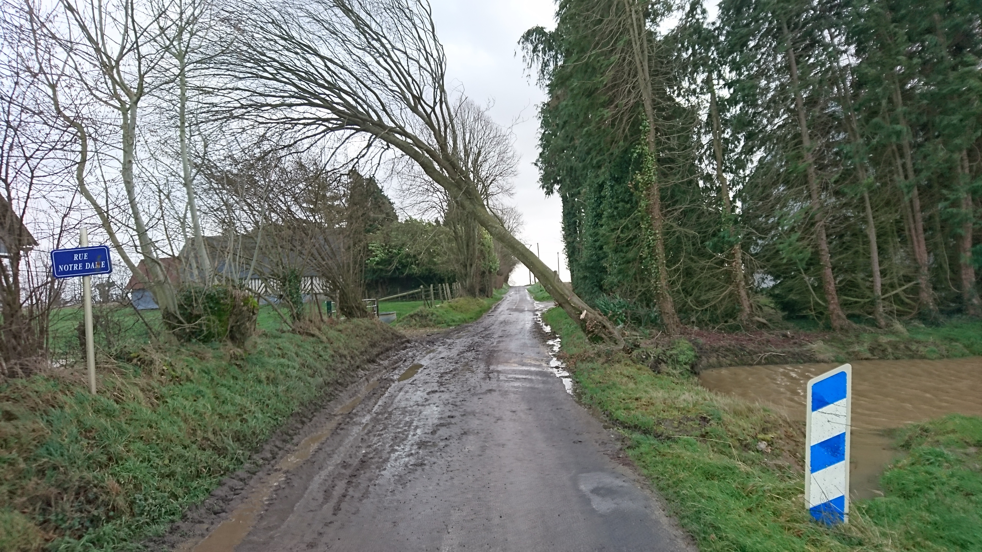 Chutes d'arbres (Gauciel, Houetteville, la Lande Saint-Léger, Fatouville-Grestain, Le Tronquay, la Roquette) de câbles électriques (Fiquefleur, Hacqueville, Louviers) ou de télécom (Bouafles, Courcelles-sur-Seine) tombés sur la route ont nécessité l'intervention des agents du département (tronçonnage, évacuation des encombrants, signalisation et circulation).