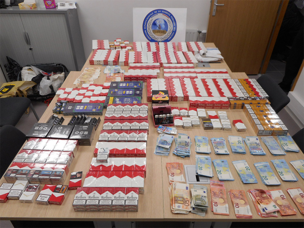 Lors des perquisitions, 634 paquets de cigarettes de contrebande et la somme de 7 189 €, en petites coupures ont été découverts par les enquêteurs.