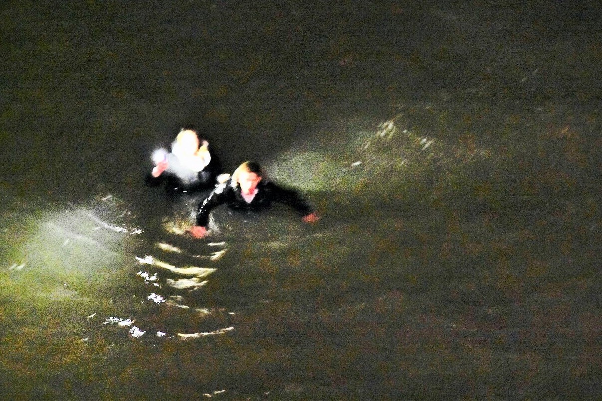 Vers 23 heures, les deux victimes, un homme et une femme de 20 et 21 ans, alors immergées jusqu'au cou dans une eau à 7 degrés, sont hélitreuillées et déposées saines et sauves sur la côte pour être prises en charge vingt minutes plus tard par l'ambulance des sapeurs-pompiers. Elles sont ensuite évacuées vers l'hôpital de Bayeux pour un contrôle médical.