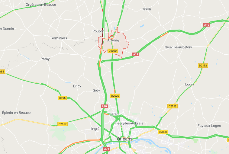 La circulation reste très perturbée ce jeudi soir sur l'autoroute A10 où s'est produit un accident de poids lourd qui s'est produit, vers 18 heures, en direction d'Orléans à hauteur d'Artenay, au nord d'Orléans (Loiret). A 21 heures, la situation était la suivante :