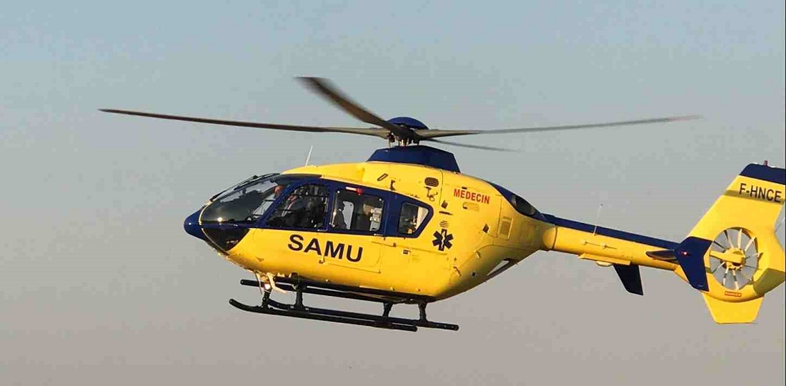 L’hélicoptère Viking du SAMU76 s’est positionné sur le lieu de l’accident et se tient prêt à prendre en charge le blessé qui va être transporté, médicalisé, vers l’hôpital le plus proche.