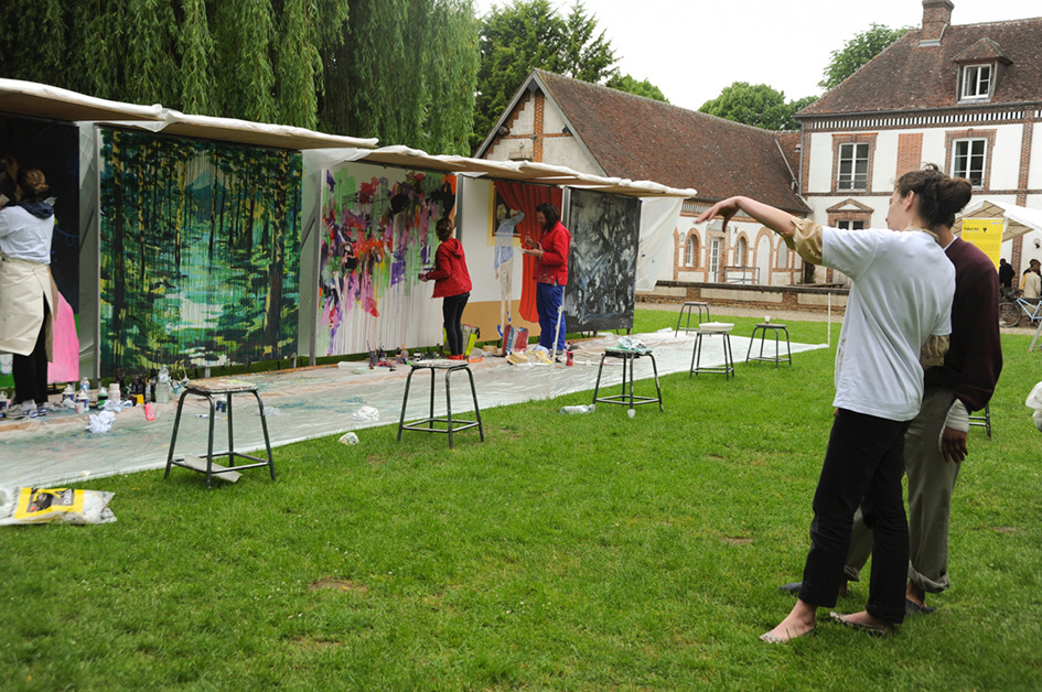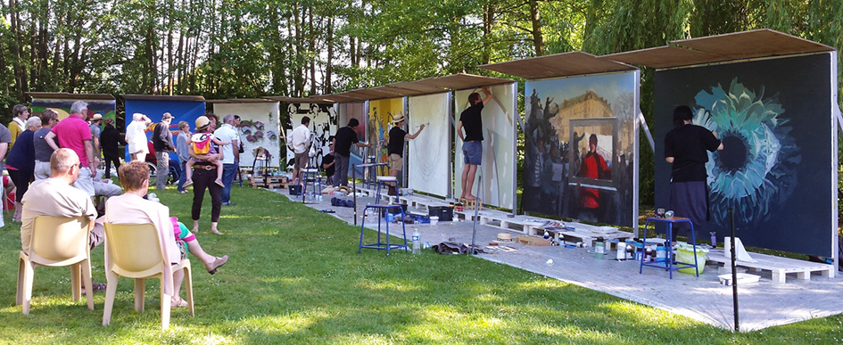 En effet, cette performance d’art contemporain, proposée par le Département de l’Eure depuis plusieurs années, a l’originalité de se dérouler en plein-air, devant le public. Les artistes doivent chacun peindre une toile grand format (5 m2), installés les uns à coté des autres pour former une palissade de 25 m. Ils réalisent leur œuvre tout au long de la journée, permettant aux visiteurs de découvrir les différentes étapes de leur création.
