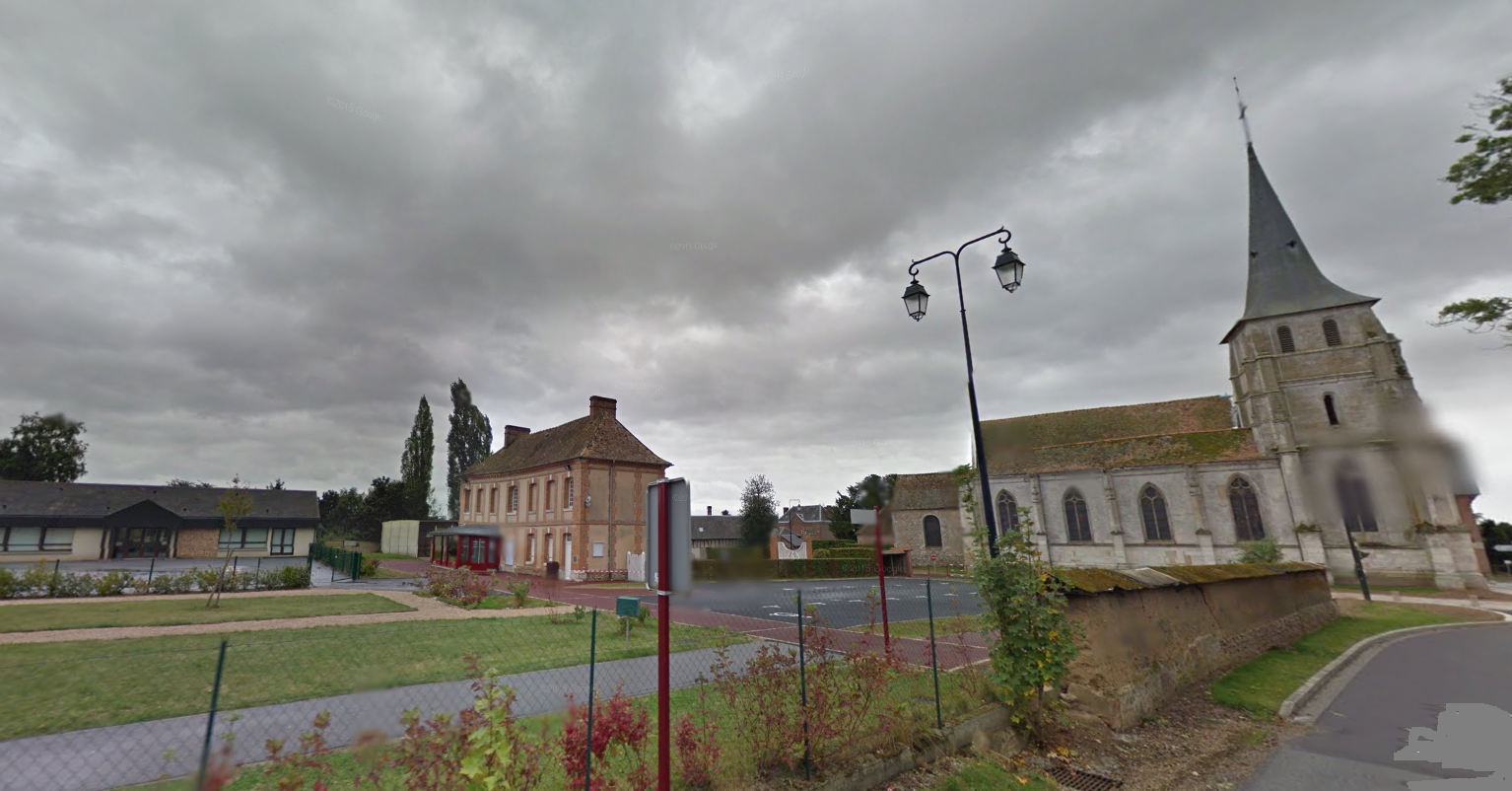 Saint-Aubin-d'Ecrosville, près du Neubourg (Eure) : son clocher, sa mairie ...et son école qui remporte le 1er prix du concours "Voyages en ville", ex-æquo avec l'école élémentaire de Fresnoy-Folny (Seine-Maritime)