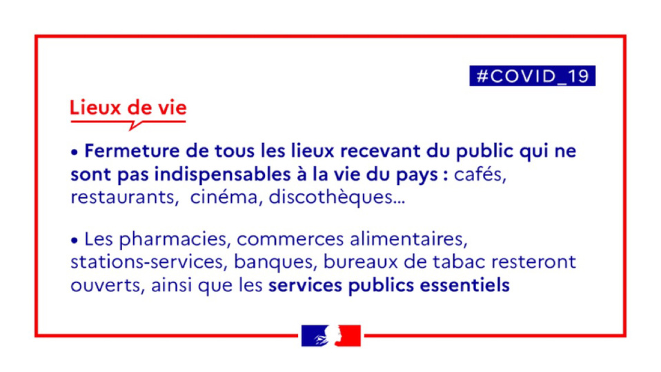 - Fermeture de tous les lieux recevant du public