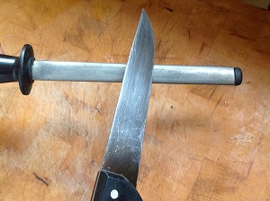 Plus préoccupant, il tient un couteau dans une main et annonce tout de go qu'il veut la caisse. Le boucher ne se démonte pas : non seulement il refuse de donner la recette, mais avec sans froid il saisit un fusil à aiguiser qui sert à affûter les couteaux et menace à son tour son agresseur. Ce dernier s'excite mais rien n'y fait. Par dépit, il casse alors trois bouteilles de cidre à portée de main et quitte le magasin précipitamment. Dans sa fuite, il manque de tomber au sol et de se faire écraser par une voiture alors qu'il traverse la rue Raspail.