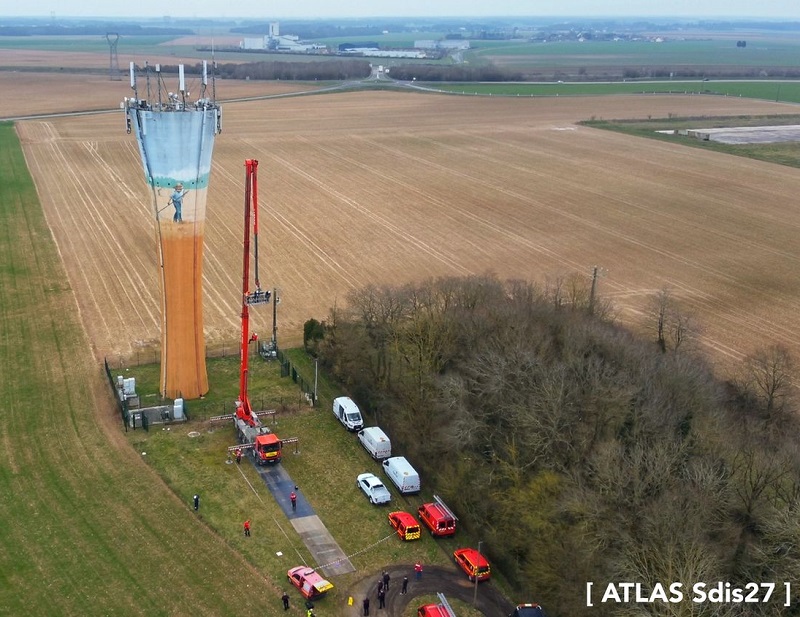 Les employés travaillaient au niveau du château d'eau quand ils se sont retrouvés coincés aux alentours de 12h30. Contacté, le service départemental d'incendie et de secours (Sdis27) a dépêché sur place une de ses équipes spécialisées en secours en milieu périlleux.