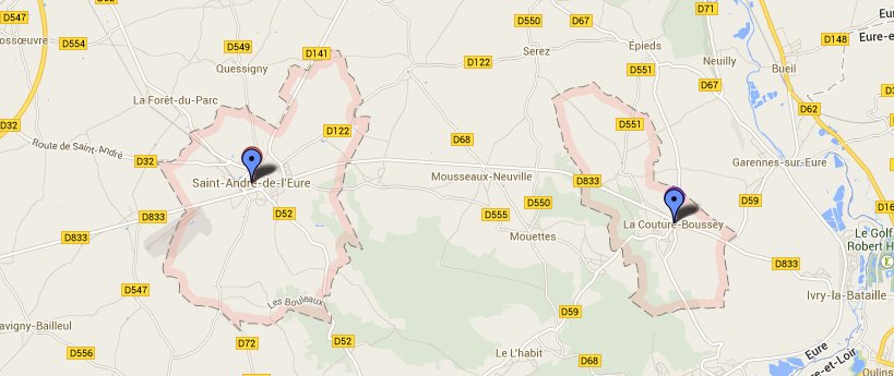 Les deux communes sont situées en bordure de la D833 à moins de 10 kilomètres l'une de l'autre (@Google Maps)