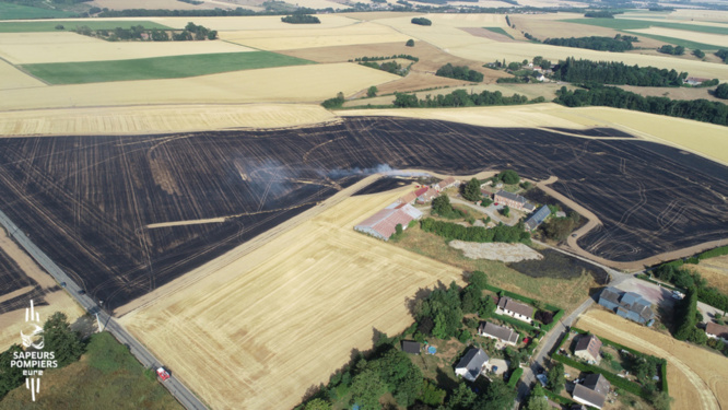 Le premier appel au Centre opérationnel départemental d’incendie et de secours (CODIS) a été reçu à 16h22. Il concerne une surface de 5 hectares de petits pois et 5 hectares de colza. L’action des 35 sapeurs-pompiers présents a permis de préserver plusieurs habitations et un corps de ferme.