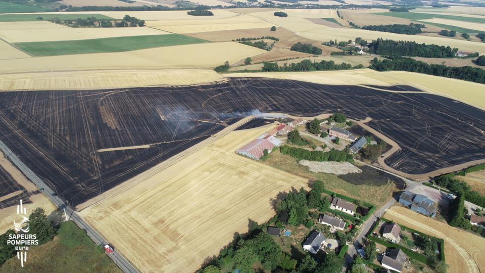 Je salue le courage et l’action des pompiers du @sdis27 depuis ce matin ! Incendies de récoltes en série. + de 500 hectares détruits. + de 300 pompiers mobilisés dont 6 blessés. 160 interventions. 1 personne âgée dont la maison était menacée par les flammes évacuée à Piseux. pic.twitter.com/bnDIxBNCTS