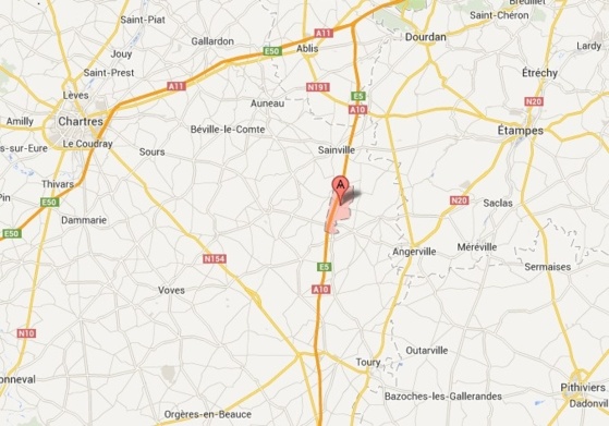 L'accident s'est produit peu après la sortie d'Allainville, sur le territoire de la commune de Châtenay en direction d'Orléans (Google Maps)