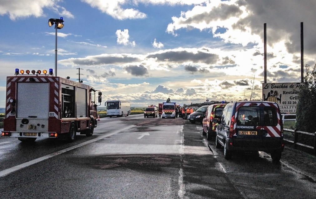 Deux des passagers des véhicules ont succombé à leurs blessures, malgré les soins prodigués sur place par les pompiers (Photo infoNormandie)