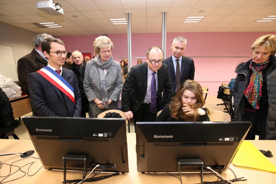 Lors de l'inauguration vendredi : Nicolas Rouly, président du Conseil général de Seine-Maritime, entouré de Christophe Bouillon, député de Seine-Maritime, de Pierrette Canu, Vice-présidente du Département, conseillère générale du canton de Duclair et de Jean Delalandre, maire de Duclair (Photo CG76)