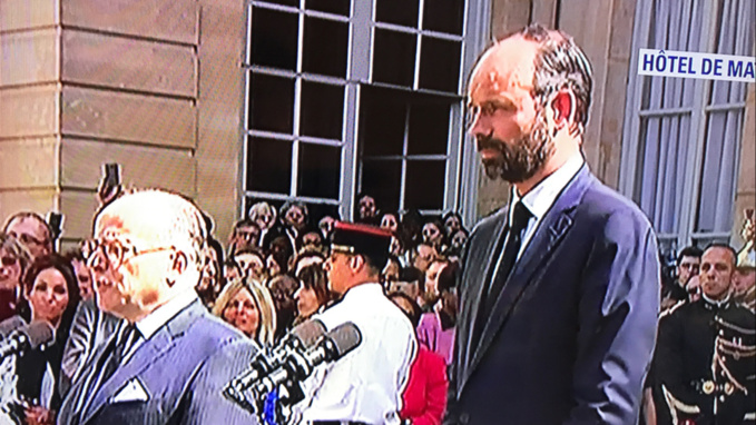 La passation de pouvoirs à Matignon entre Bernard Cazeneuve et Édouard Philippe