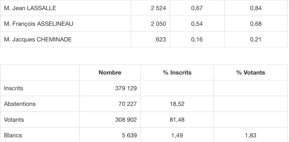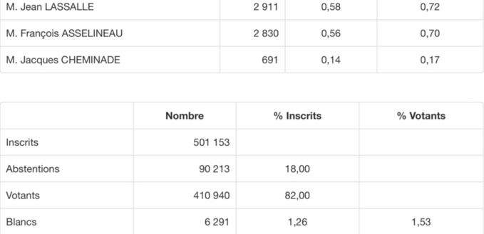 Nicolas Dupont-Aignan (Debout la France) : "je réunirai les instances de mon parti en début de semaine et ferai part de mon choix" pour le deuxième tour.
