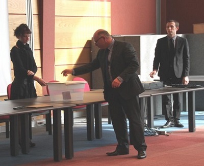 C'est une main innocente, en la circonstance celle d'Estelle, une jeune stagiaire de la préfecture, qui a sorti de l'urne le nom des listes. Dans la plupart des communes il y a entre 2 et 6 listes engagées dans la course des municipales. A Evreux, ville-préfecture, il y en a huit ! C'est la liste de Lutte Ouvrière qui a décroché le très prisé panneau n°1.