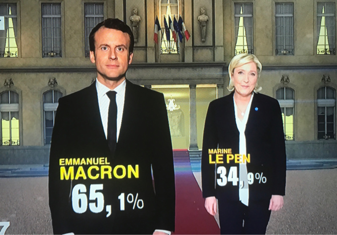 Le candidat d’En marche ! a recueilli plus de 65 %, contre près de 35 % pour Marine Le Pen, selon une estimation à 20 heures Ipsos-Sopra Steria pour France Télévisions, Radio France et « Le Monde ».