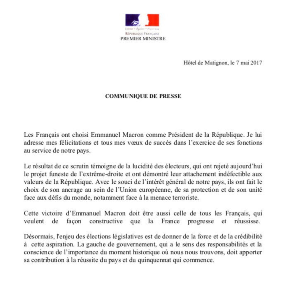 Ce soir, la République a gagné. Mais ne sous-estimons pas les fractures qui traversent le pays. Dans les résultats de ce 7 mai il y a certes la joie légitime des vainqueurs; mais il y a aussi de la colère, de la souffrance, du désespoir. Près de 11 millions de Français ont mis un bulletin Le Pen dans l'urne. L'abstention et les votes blancs n'ont jamais été aussi élevés pour une élection présidentielle. Ces faits sont graves, inquiétants.