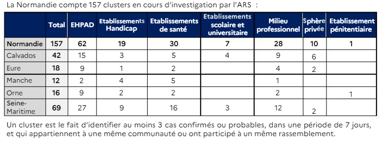 Il en est de même pour les foyers épidémiques (clusters) dont le nombre est passé de 148 à 157 depuis vendredi 30 octobre.