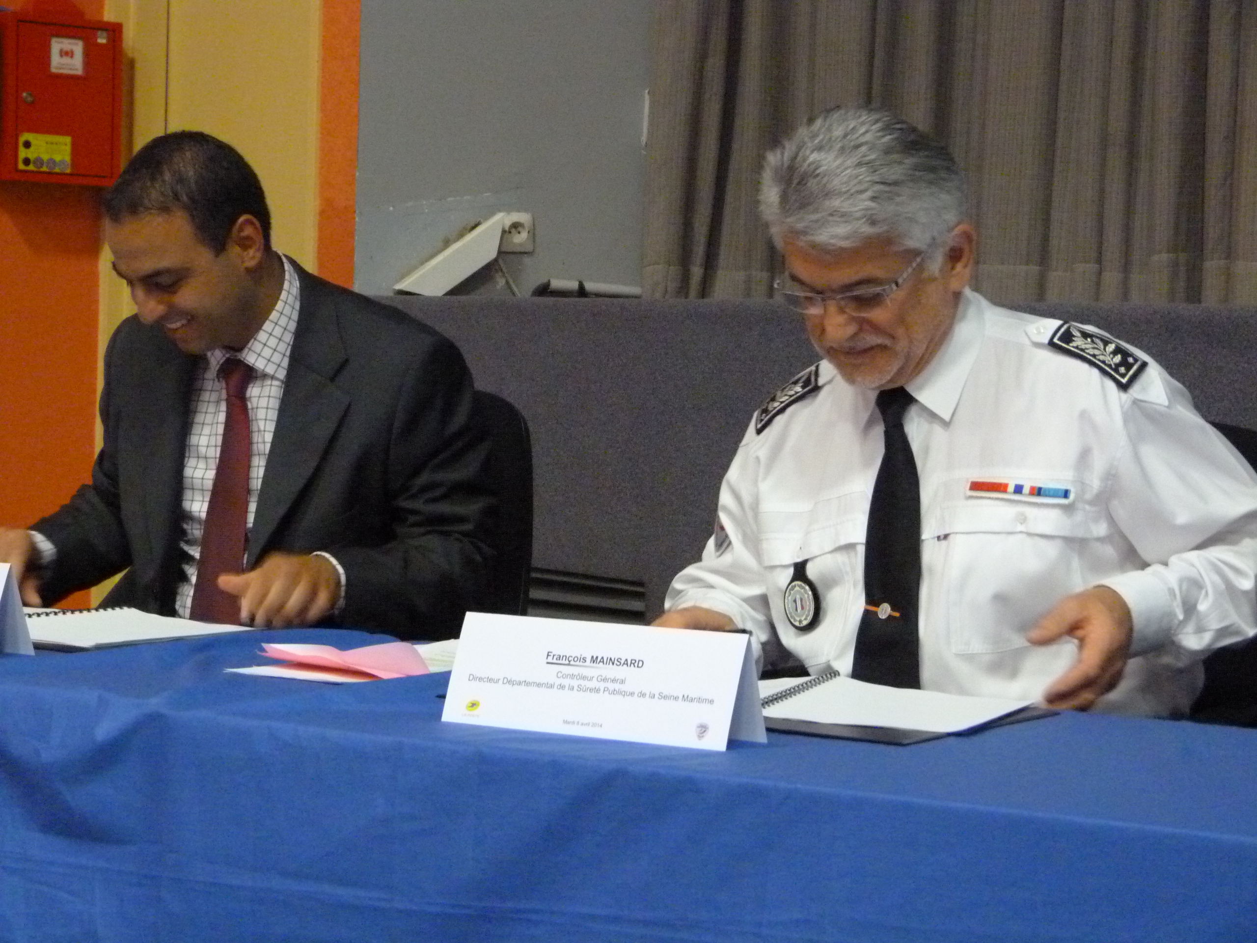 Une convention de partenariat portant sur le renforcement de la coordination entre les services de police du département et La Poste a été signée mardi 8 avril entre François Mainsard, directeur départemental de la Sécurité publique (DDSP) de Seine-Maritime et Mehdi Bahtani, directeur régional de La Poste de Haute-Normandie.