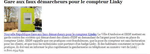 Toujours est-il que l'individu repart avec les deux procurations sans en laisser un exemplaire à sa "cliente". Pour le moins inquiète, la quadragénaire téléphone à EDF et se voit répondre que l'entreprise n'effectue aucun démarchage à domicile pour ces nouveaux compteurs.
