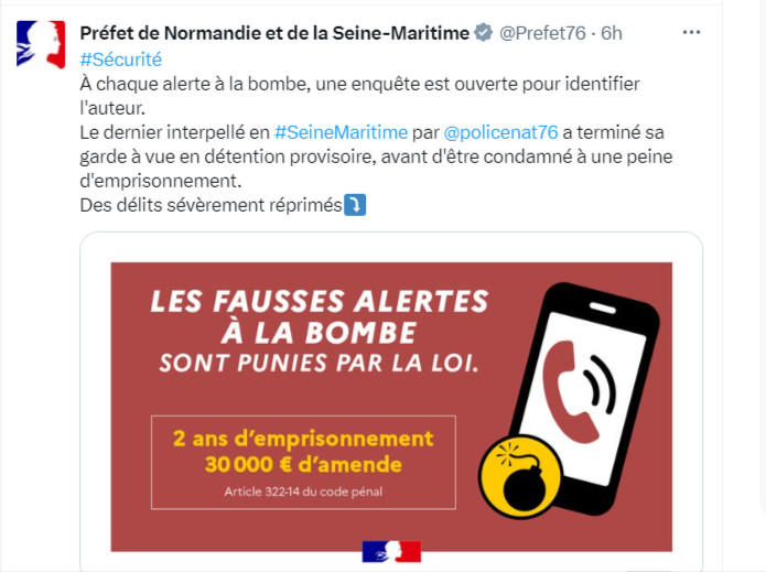Une enquête a été ouverte de manière à identifier l’auteur de cette fausse alerte.