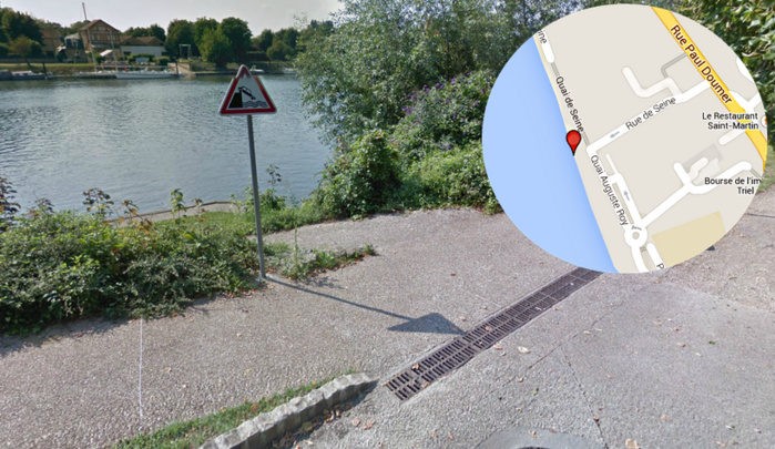Le véhicule venant de la rue Paul Doumer aurait dévalé la rue de Seine (en sens unique) avant de tomber dans la Seine au niveau du quai Auguste Roy (Illustration @infoNormandie/Google Maps)