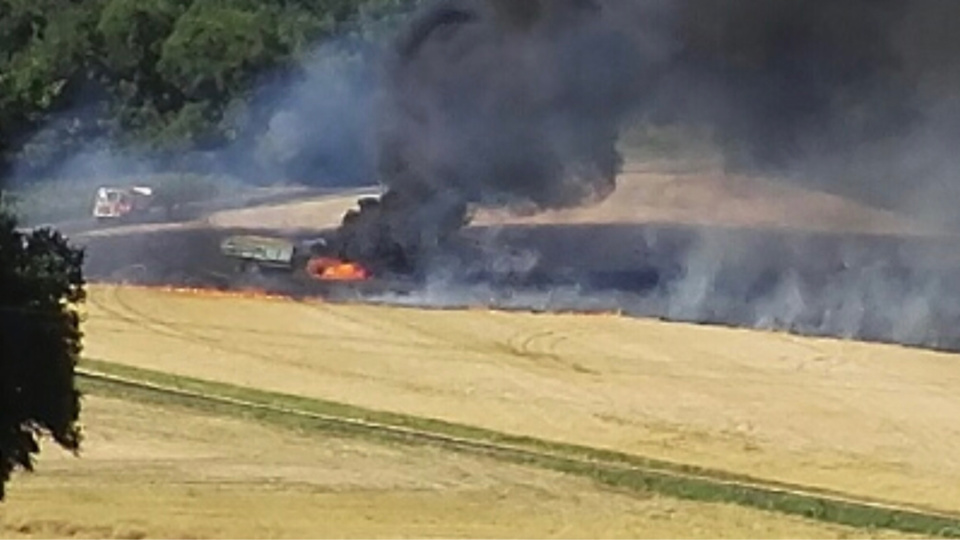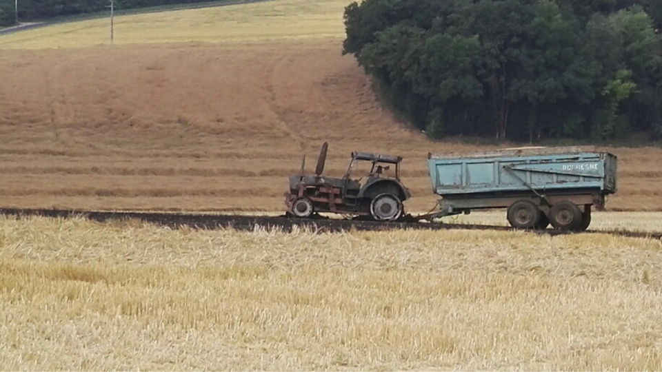 Un tracteur agricole attelé d’une remorque a été détruit dans l’incendie. Il n’y a pas eu de blessé.