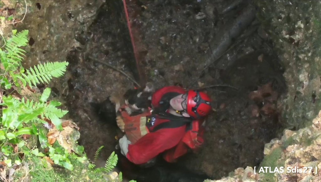 Aujourd’hui, 4 chiens étaient tombés dans une marnière et grâce à l’unité d’appui drone + l’équipe de secours en milieu périlleux + des sapeurs-pompiers ils ont été sauvés 💪