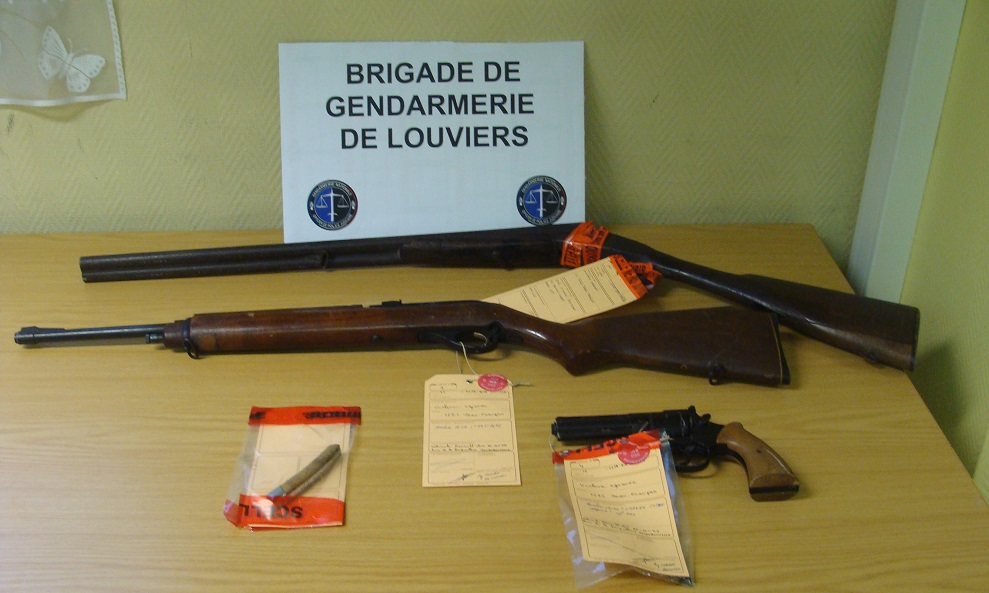 Les investigations réalisées par les gendarmes dans le temps de l’intervention permettent de découvrir un véhicule stationné sur la voie publique, à une cinquantaine de mètres du lieu des faits. Or, une carabine, un revolver et un couteau sont visibles à l’intérieur de l’habitacle. Le véhicule ainsi que l’ensemble des armes ont été immédiatement enlevés en vue de leur saisie.