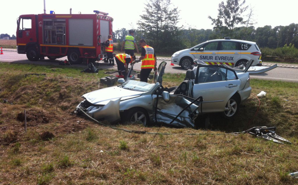 Dans le choc, le conducteur de la Mazda, âgé de 88 ans, a été tué sur le coup. Les sapeurs-pompiers d'Evreux ont dû désincarcérer son épouse, âgée de 84 ans, qui a été prise en charge par le médecin du SMUR. Souffrant de douleurs dorsales, elle a été admise au centre hospitalier d'Evreux.