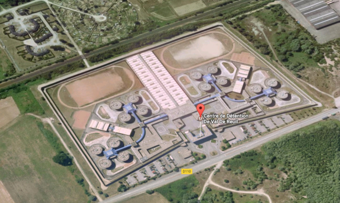 Construit en 1989 sur un vaste domaine de 13,5 ha, le centre de détention de Val-de-Reuil, avec une superficie de 54 000 m2, est le plus grand d'Europe (Illustration©Google Maps)