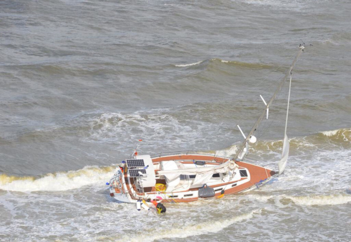 Le voilier s'est échoué au large du littoral du Pas de Calais, avec deux personnes à bord et un chat (Photo Marine nationale)