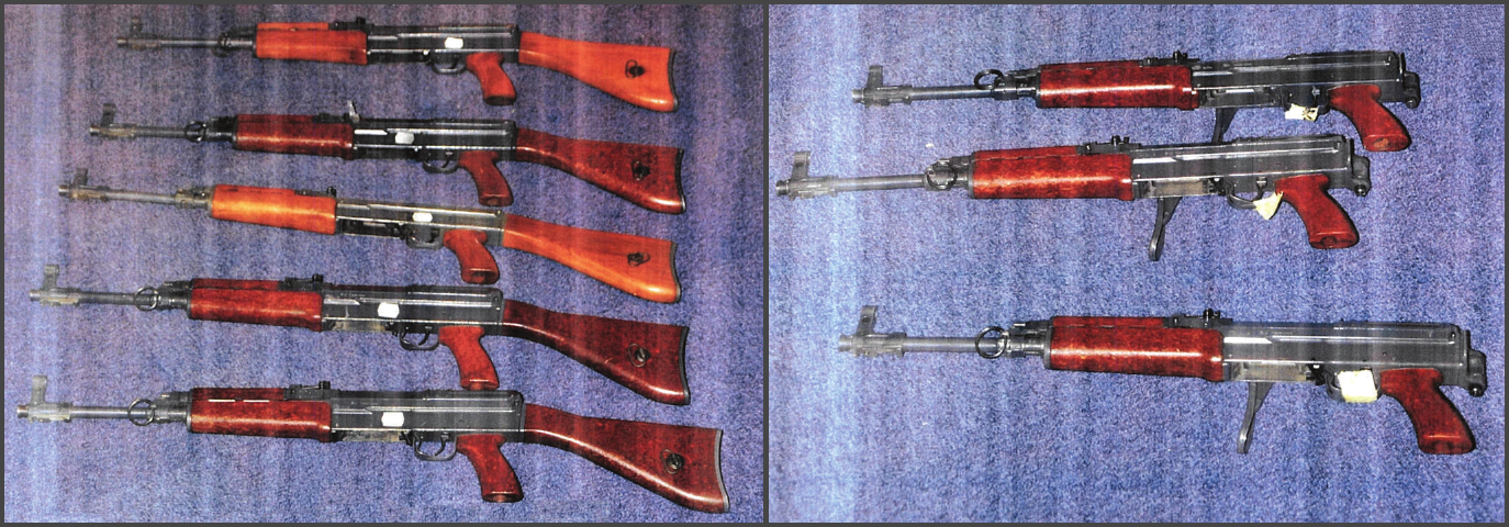 Les huit Kalachnihkov qui ont d'abord été découvertes incidemment à Val de Reuil et qui ont permis au SRPJ de remonter jusqu'à leur destinataire, près de Rouen