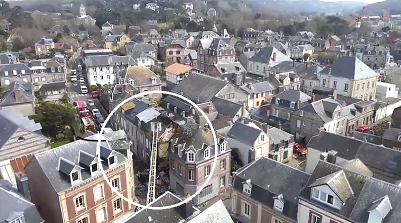 Sous l'effet de l'explosion, l'habitation s'est effondrée - Capture d'écran vidéo du Sdis76