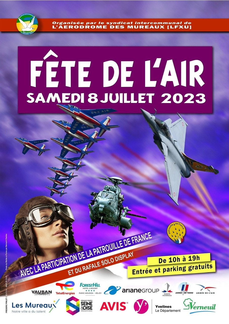 Ce samedi 8 juillet 2023, se tient la Fête de l’air organisée par l'aéroclub Roger Janin sur l’aérodrome des Mureaux-Verneuil (Yvelines).