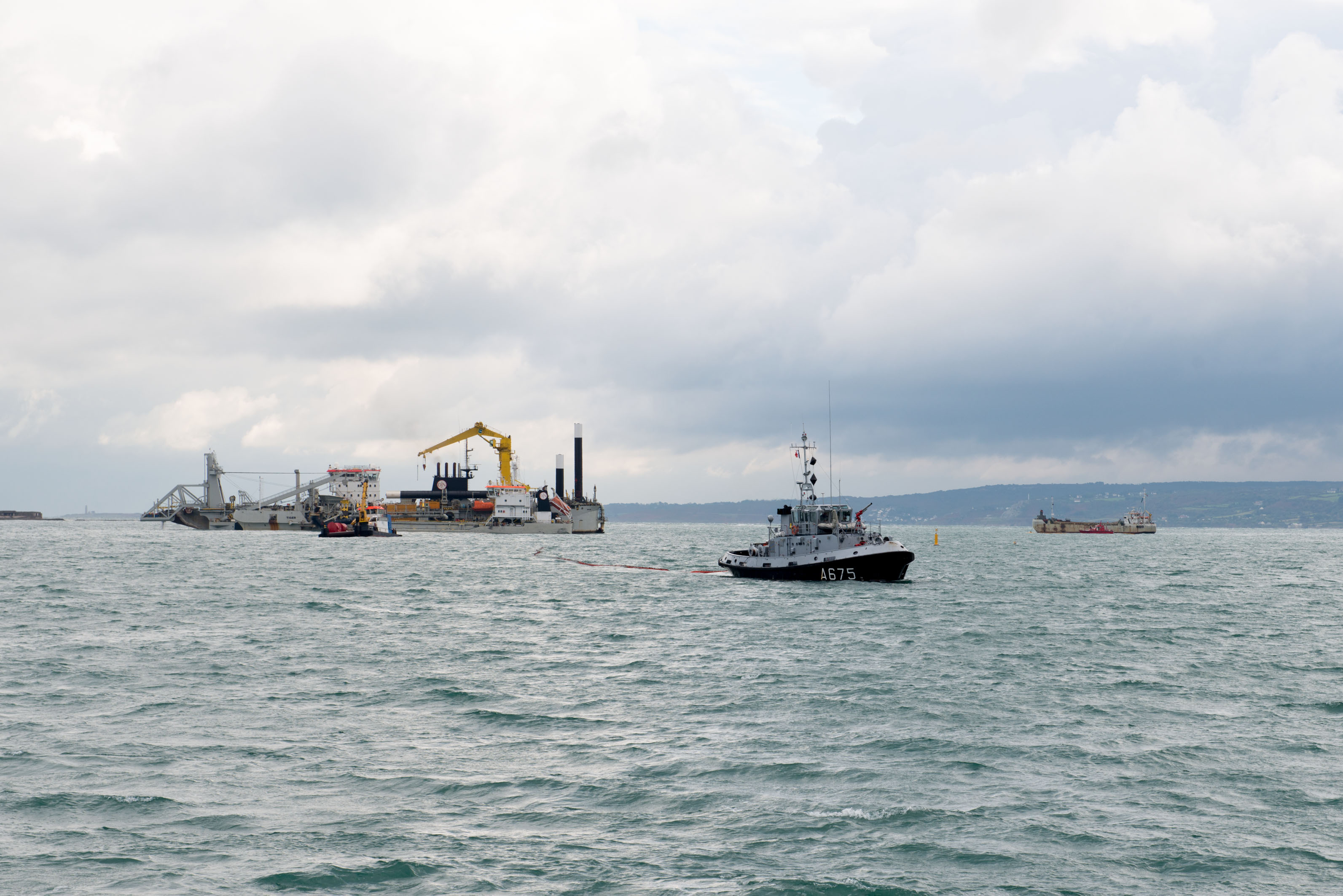 Ce jeudi matin, aux environs de 6 heures, la vigie du Homet a signalé une fuite accidentelle de gasoil provenant d'un chaland, le NIJPTANGH, à couple d'une barge participant aux travaux dans la rade du port de Cherbourg.