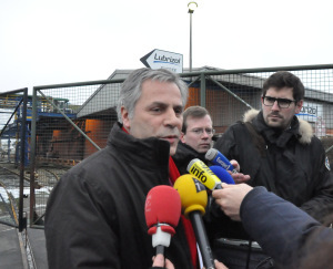 Frédéric Henry, PDG de Lubrizol-France, répondant ce matin aux journalistes à l'entrée de l'usine rouennaise (photo Infonormandie)
