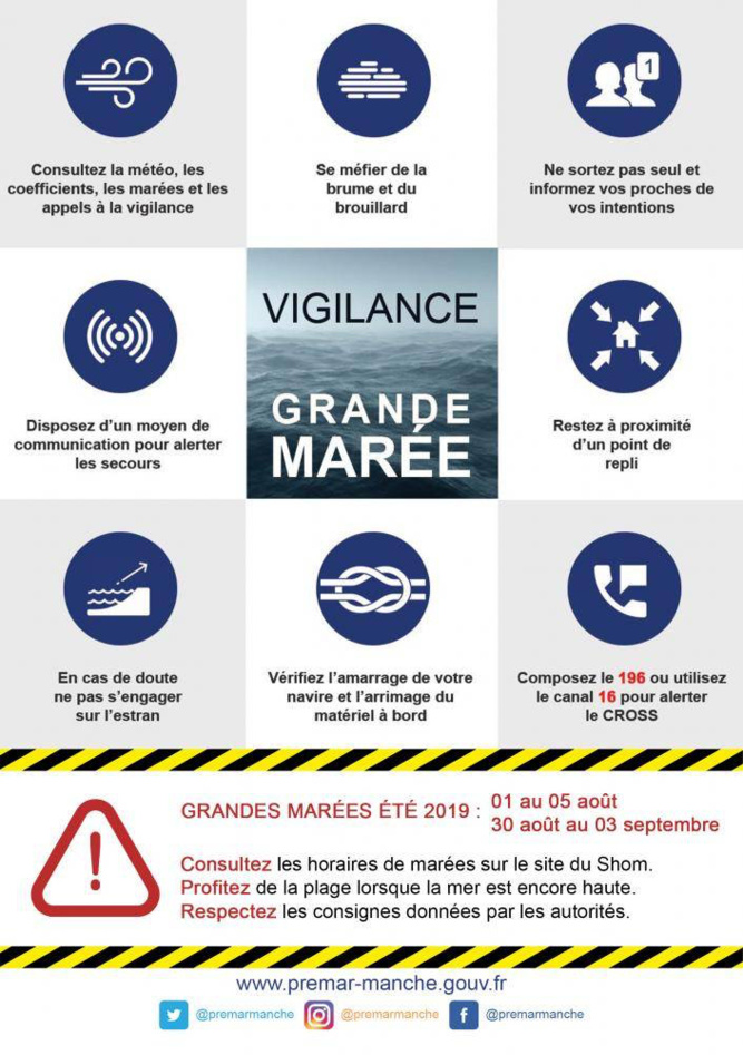 C'est pourquoi, le préfet maritime appelle à la plus grande prudence de tous les usagers de la mer, et en particulier ceux qui pratiqueront la pêche à pied ou qui se promèneront sur le littoral soumis à la marée.