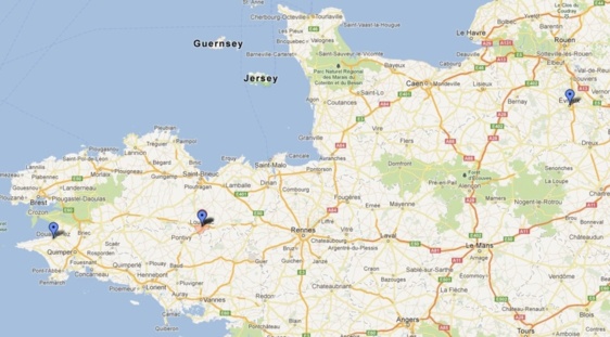 Eure, Douarnenez, Loudéac : le périple criminel des deux Haut-Normands (Google Maps)