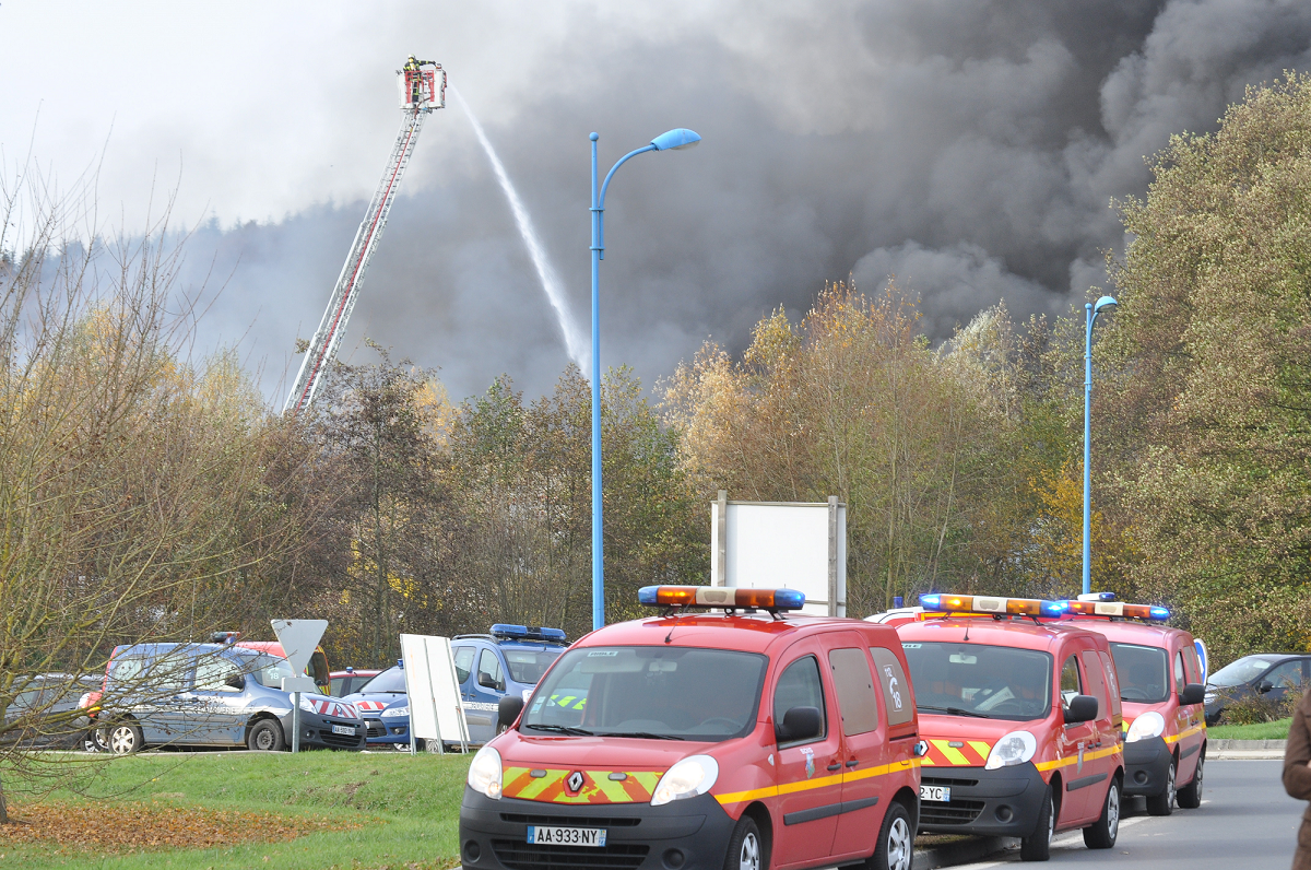 Une cinquantaine de sapeurs-pompiers de tout le département ont été mobilisés au plus fort de l'incendie qui a ravagé cet après-midi un bâtiment de 2000 m2 de l'entreprise Paprec Normandie, en bordure de la RN 154 à Acquigny (Eure). A 18 heures, les pompiers étaient maîtres du feu, empêchant ainsi sa propagation au bâtiment principal.