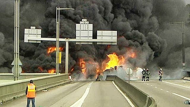 Toujours est-il que le mastodonte s'est couché. Le contenu de la citerne s'est répandu sur la chaussée et s'est rapidement enflammé. Le feu a provoqué d'immenses dégâts, fragilisant la structure métallique de l'ouvrage qui a dû être fermé totalement à la circulation.